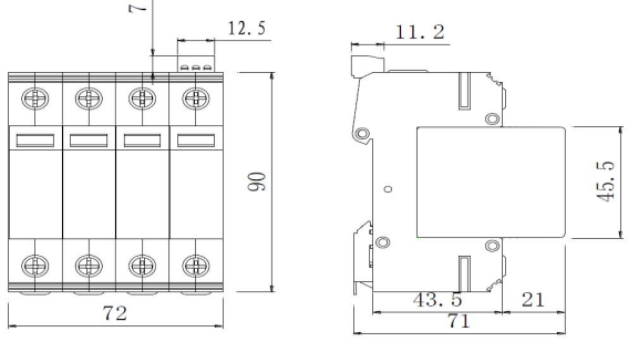 內(nèi)部保護(hù)裝置 | 防雷單元內(nèi)置熱脫扣裝置 |