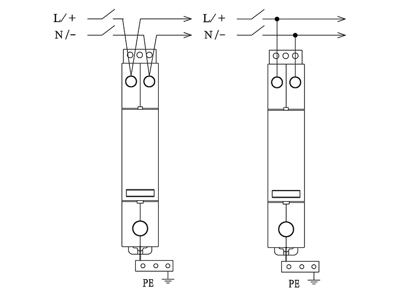 DXH06-F/DC48電涌保護(hù)器,適用于直流48V或-48V電壓系統(tǒng),配電系統(tǒng)以及終端設(shè)備的電涌保護(hù),應(yīng)安裝在防雷區(qū)1(LPZ1)和防雷區(qū)2(LPZ2)的界面處。