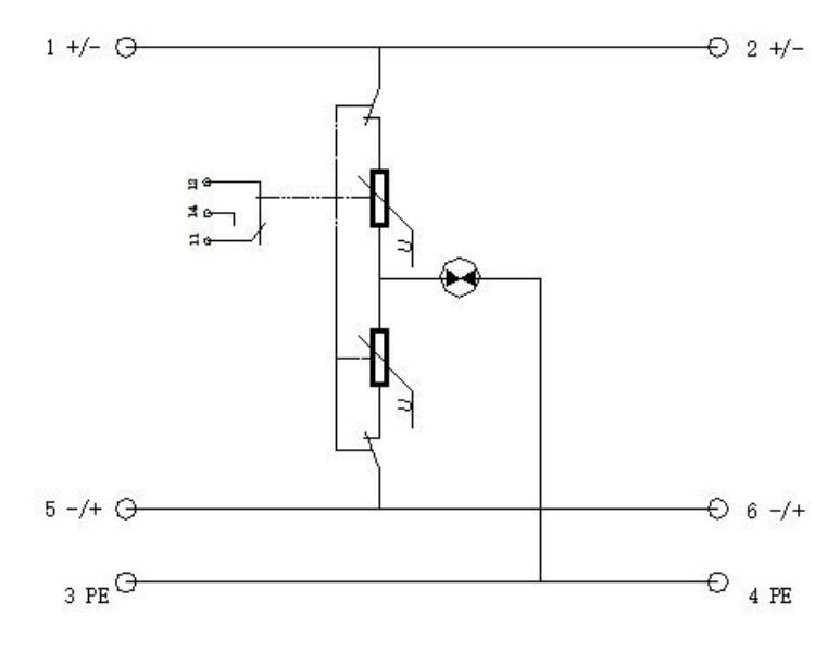 6.5 .防雷器正常工作時,告警干接點(diǎn)為導(dǎo)通狀態(tài);防雷器失效時,狀態(tài)指示變紅色,同時告警干接點(diǎn)為開路狀態(tài)。