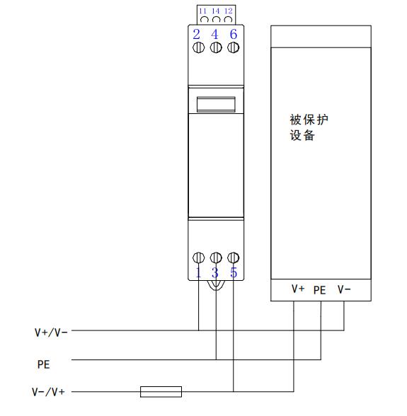 6.1 .DXH06-MP-DS 型電涌保護(hù)器可采用最好采用如圖(3- 1A) 所示的串聯(lián)形接線方式,當(dāng)受實(shí)際條件所限不易實(shí)現(xiàn)串聯(lián)形接線時,也可采用如圖 (3- 1B) 所示的常規(guī)的直接并聯(lián)接線,為實(shí)現(xiàn)更好的防護(hù)效果,當(dāng)采用直接并聯(lián)接線時,接線應(yīng)盡量短,總長度應(yīng)控制在 0.5m 以內(nèi)。