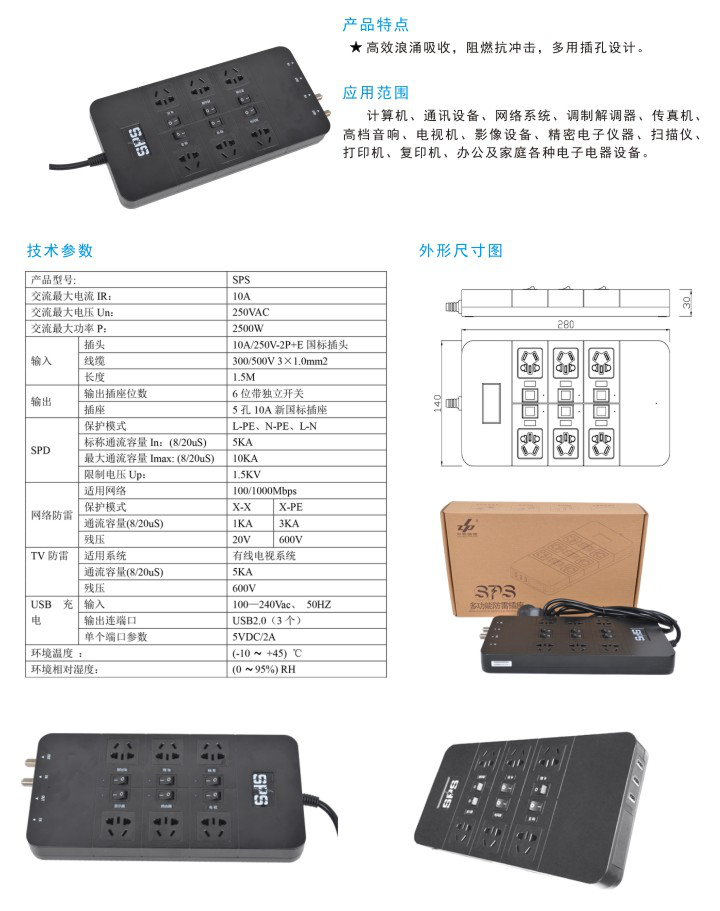 湖南中普 ZP 防雷插座 USB快充 獨立開關(guān) 家用電器保護 SPS
