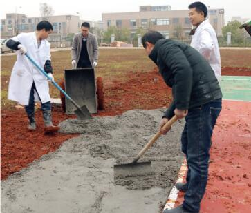 在12月24日當(dāng)天下午,為了提高籃球場使用的便捷性,對籃球場擴(kuò)建一條行人通道,由工會組織的籃球場修繕隊(duì)正式進(jìn)場了,十幾名員工,在寒風(fēng)中各司其職,有的攪拌石沙、有的添加水泥、有的運(yùn)輸攪拌好的砂漿、有的平整水泥路面,雖然室外的溫度寒風(fēng)刺骨,但他們都干得熱火朝天,頭頂冒著熱氣。